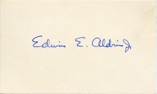 Astronaut and second man to walk on the moon. This item is a signed 3x5 card. He has signed it with his RARE full name, Edwin E. Aldrin Jr.